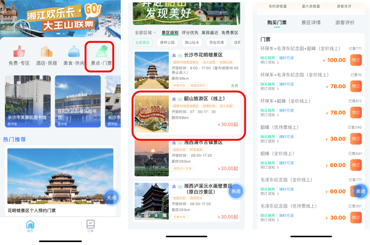 “湘易办”超级服务端(以下简称“湘易办”)新上线“惠民文旅”专区,旨在为广大用户提供更加丰富、便捷的文旅服务。专区包含查询、预约免费活动和场馆、购买景区门票、预订酒店民宿等服务功能,可为游客用户节省排队时间,让旅行更轻松便捷!