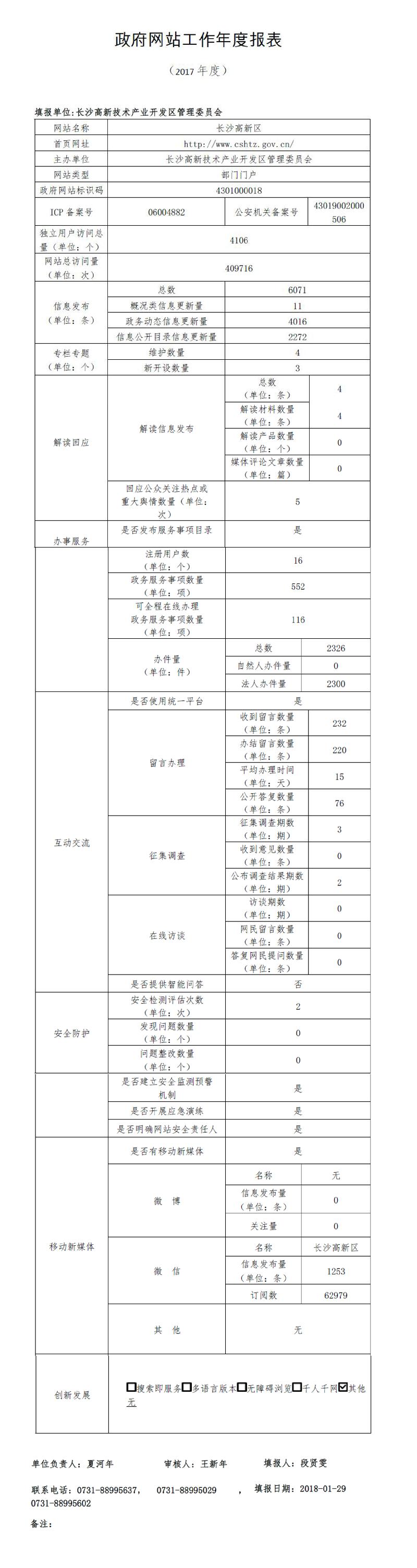 长沙高新区利来老牌国际网站工作年度报表(2017年)