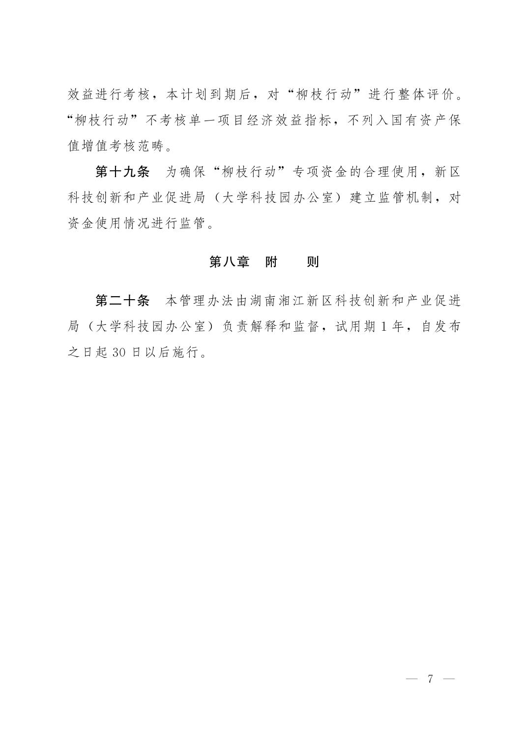 湖南湘江新区管理委员会关于印发《湖南湘江新区(长沙高新区)支持大学生创业“柳枝行动”管理办法(试行)》的通知